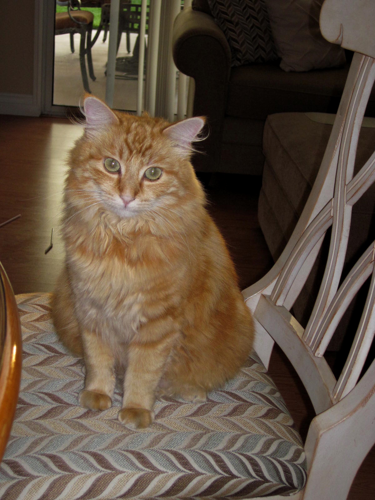 They adopted Simba from someone in their neighborhood who wasn’t providing very good care for him.  His new owners provide a very nice home for him and he seems very happy to be there.  He spends most of his day out visiting and exploring his territory.